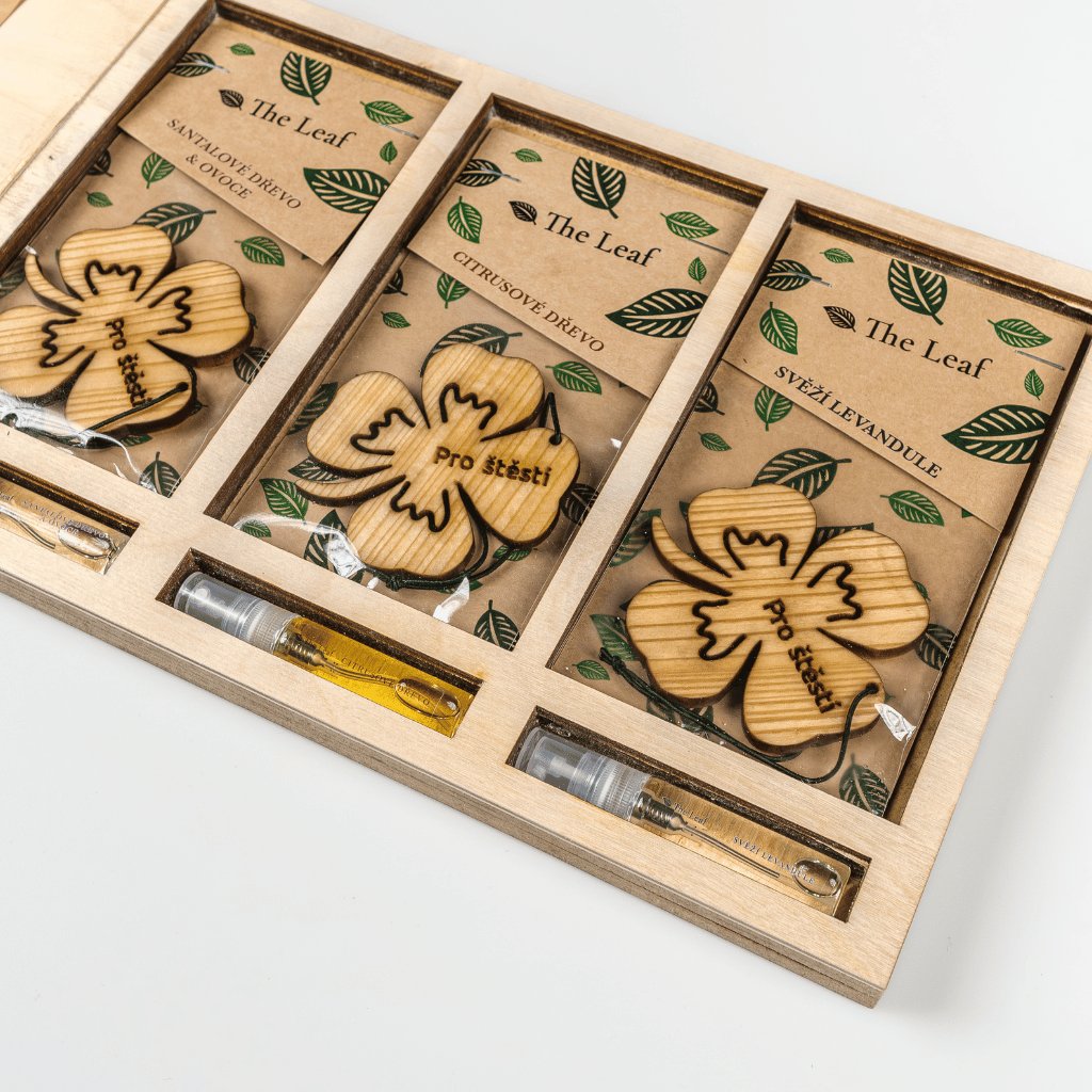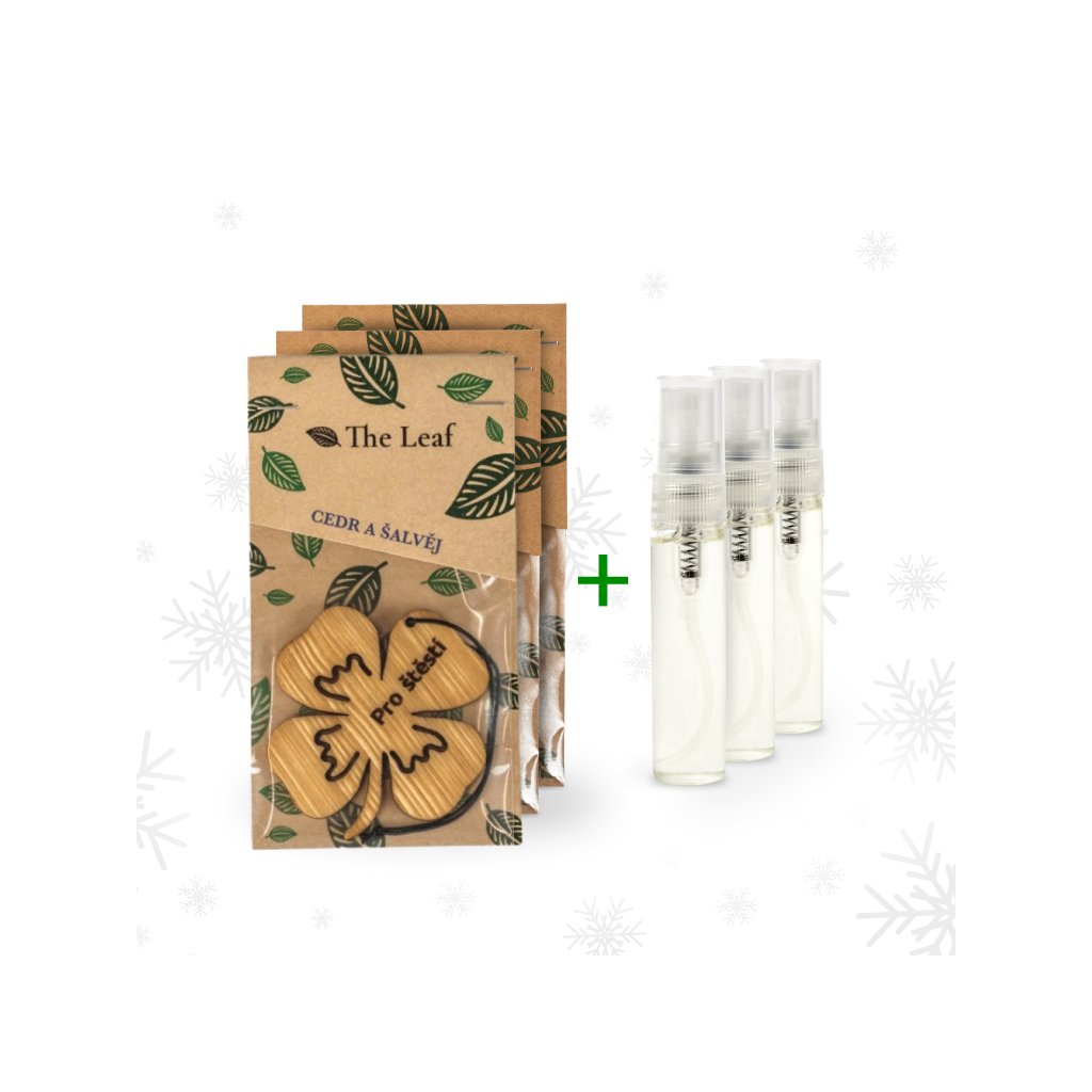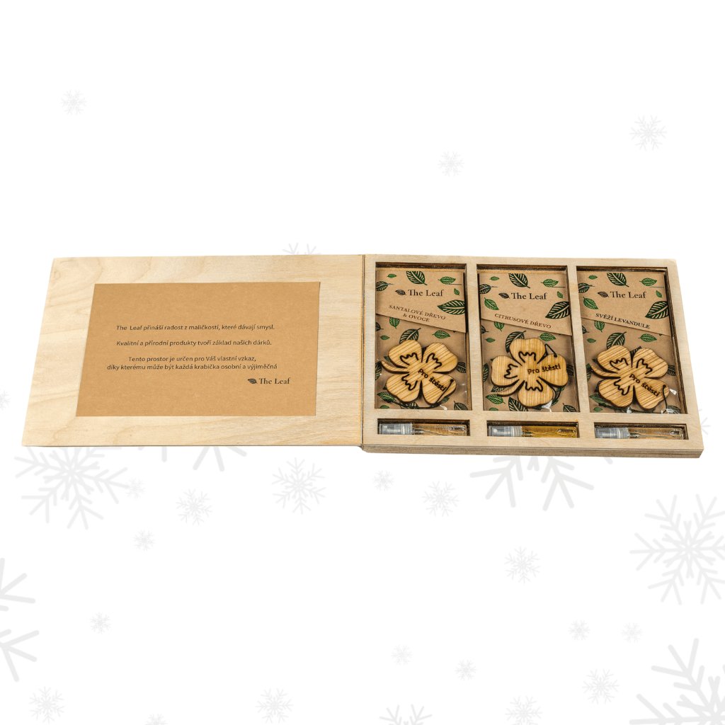Obsah balení: 3ks vonných čtyřlístků do auta, 3ks osvěžovačů o objemu 5ml, vánoční balení, možnost vlastního vzkazu.
